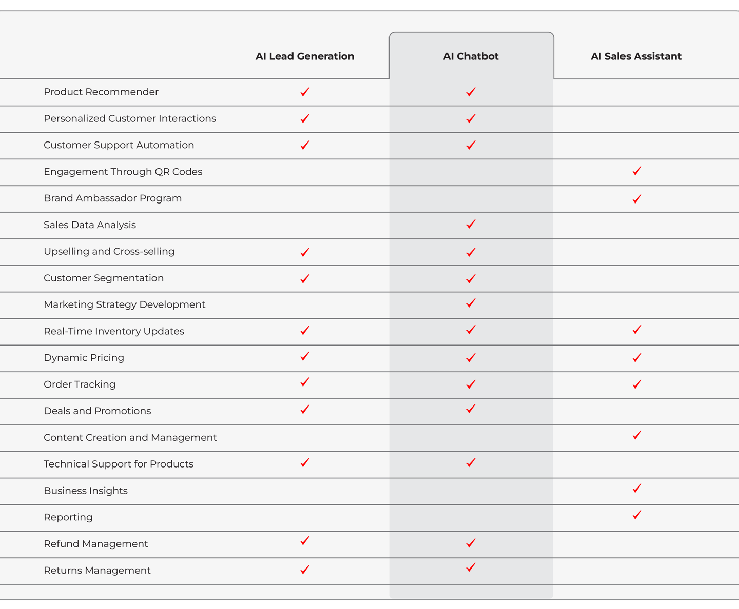 Upgrade your customer service with our AI Sales Assistant, designed to guide and assist customers through their shopping journey, leading to enhanced customer satisfaction and increased sales.